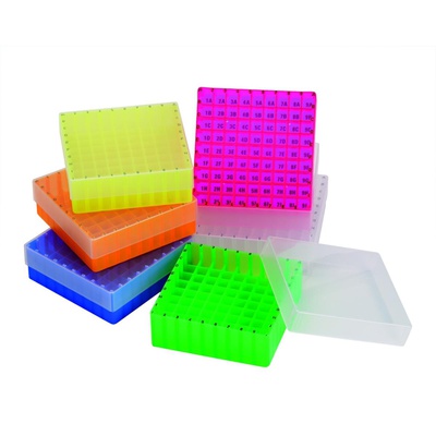 Rack PP ROSA con coperchio 81 posti per vials Ø 12 mm